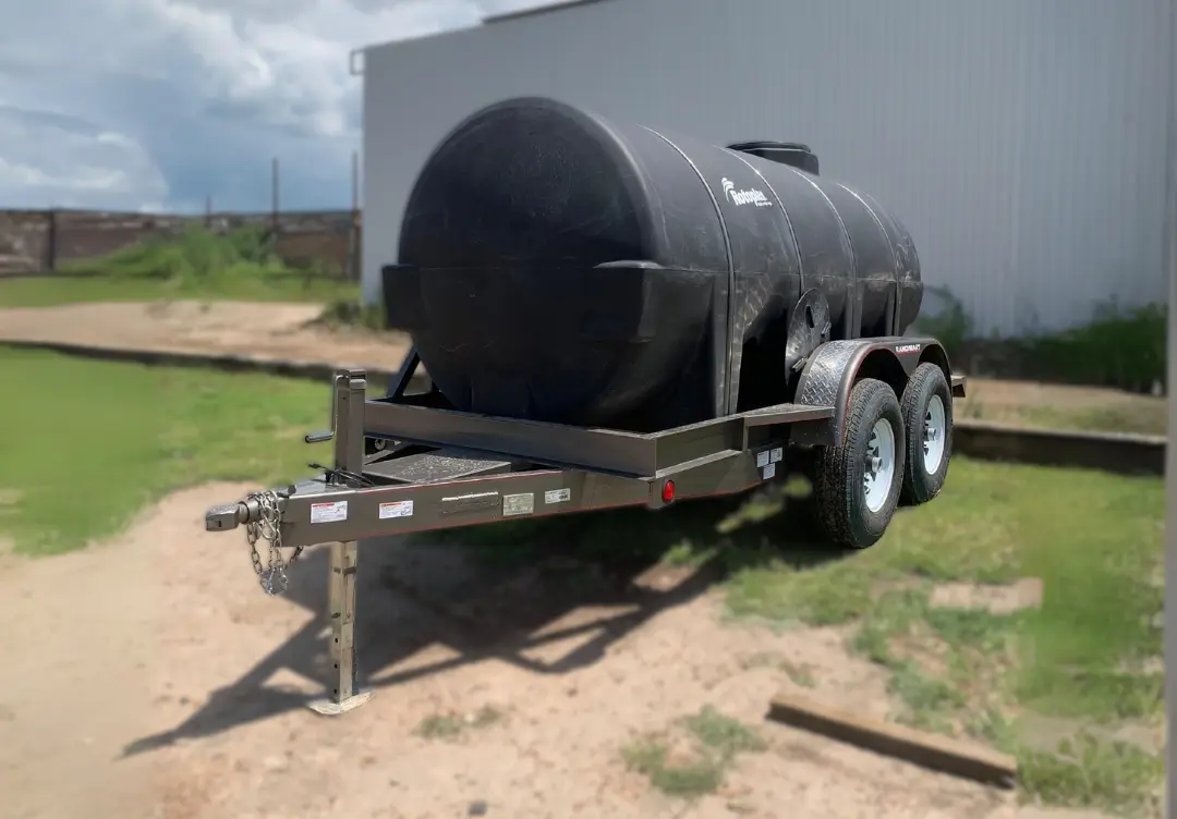Remolque con nodriza estándar 5,000 L, marca Ranchmart. Medida 1.55 (hasta los arcos) X 3.40 X 1.48 X 85 CM (sin arcos); Capacidad de 6,000 KG.