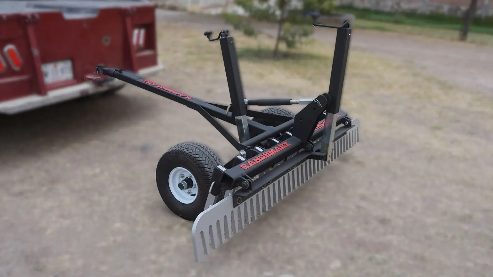 Equipo manual de prearado de suelos con reacomodo de materiales emparejando arena, nuevo, marca Ranchmart. Cuenta con peine, navaja y picos.