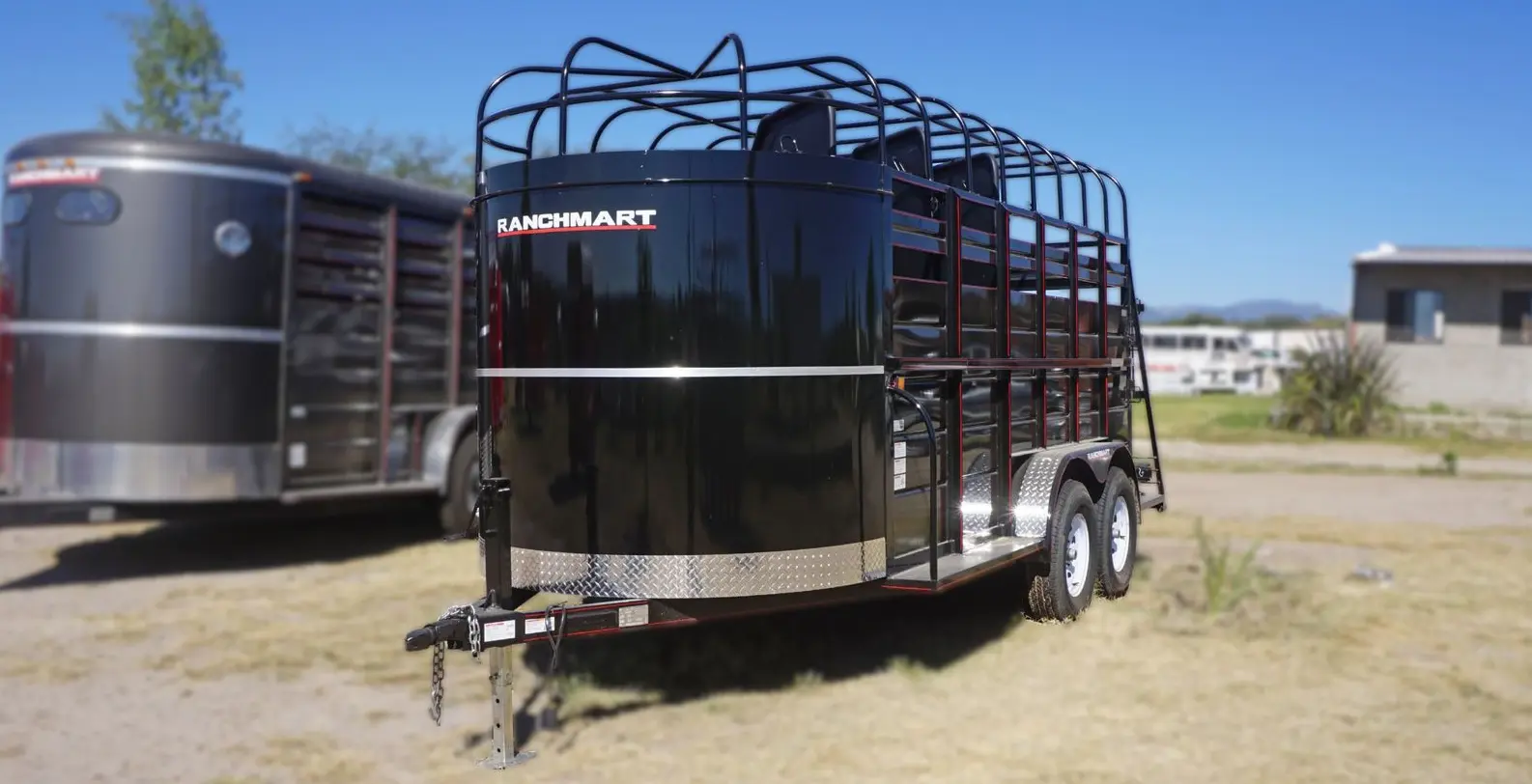 Remolque nuevo tipo jaula equipado marca Ranchmart, modelo Oakland, para 2 caballos. Medida 5X9 FT; Capacidad de 3,000 KG.